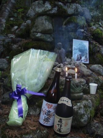 森川さん差し入れの「森伊蔵」をお供えして