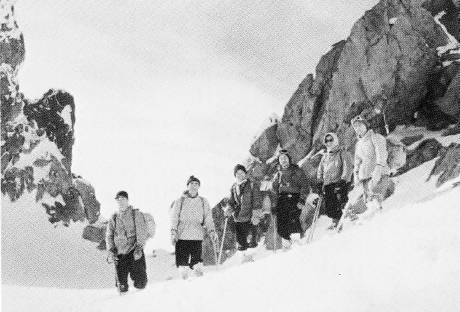 冬山合宿(31年12月28日~1月4日)は北穂小屋をベ-スに滝谷を登る。小山義治氏含む9名が参加。