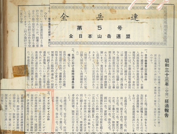 山溪よりは数日前依頼の手紙がそちらに届いたと存じますが、大兄のダイナミック・ビレー用具については、おそらく東京を中心にした関東方面では、誰も全く知らぬことです。※ナイロンザイルをより強くする方法を群大教授の吉田広(元?)君が研究してますが、完成は数年先?