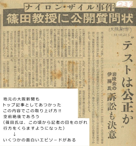 「大阪発のナイロンザイルに関するニュースの内,篠田氏談」