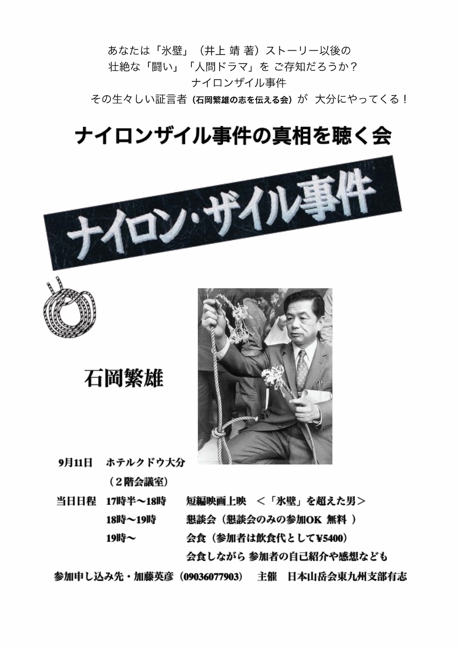 | 尾登さんがお作り下さった「ナイロンザイル事件の真相を聴く会」のチラシ ![]() |