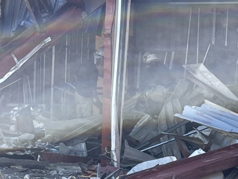 放水が行われる中 ![]() 廃材を分別する作業員さん |