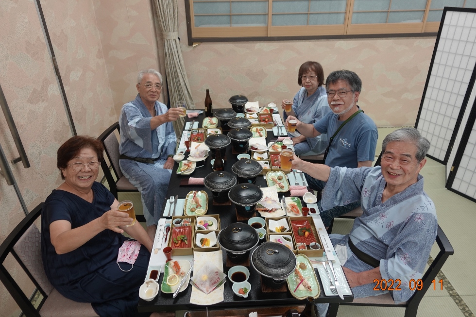 大きな会の後は慰労会に行くのですが、いつもは東海組の近場の湯の山温泉に行っています